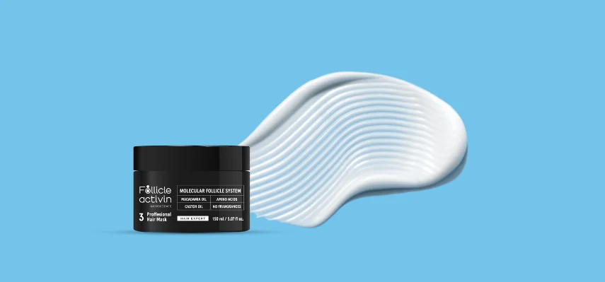 FOLLICLE ACTIVIN -kosteuttava naamio sulkee hiuksen kynsinauhan, lisää kiiltoa ja elinvoimaa, sekä tasoittaa huokoista hiuskuitua. Anna vaikuttaa 5–10 minuuttia.